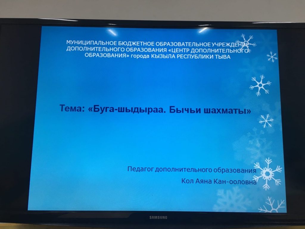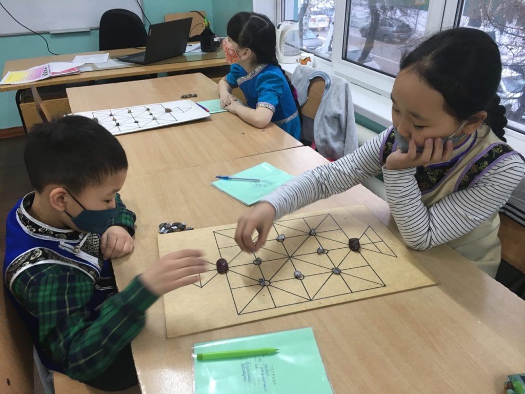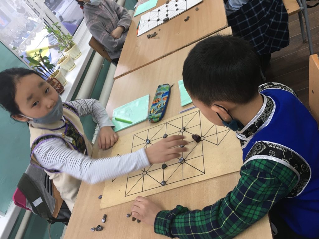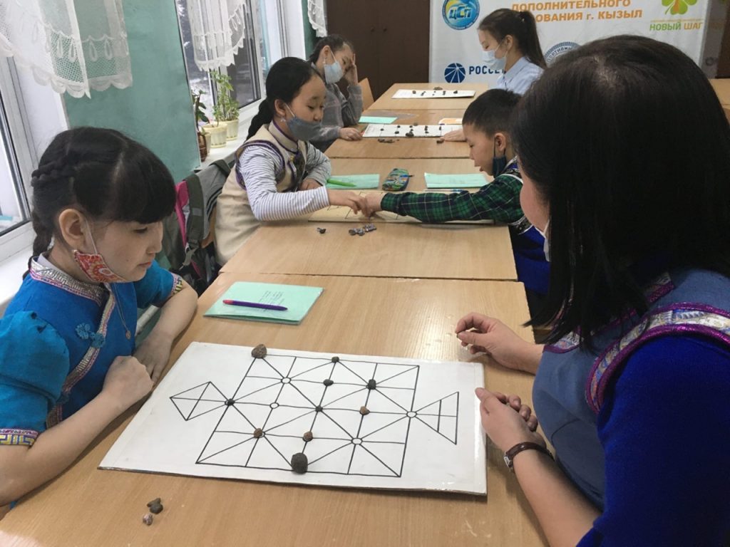 Новости Игра «БУГА-ШЫДЫРАА» 08.02.2021 / В МБОУ ДО ЦДО г. Кызыла педагог Кол Аяна Кан-ооловна ознакомила учащихся с национальной игрой «БУГА-ШЫДЫРАА» (бычьи шахматы).