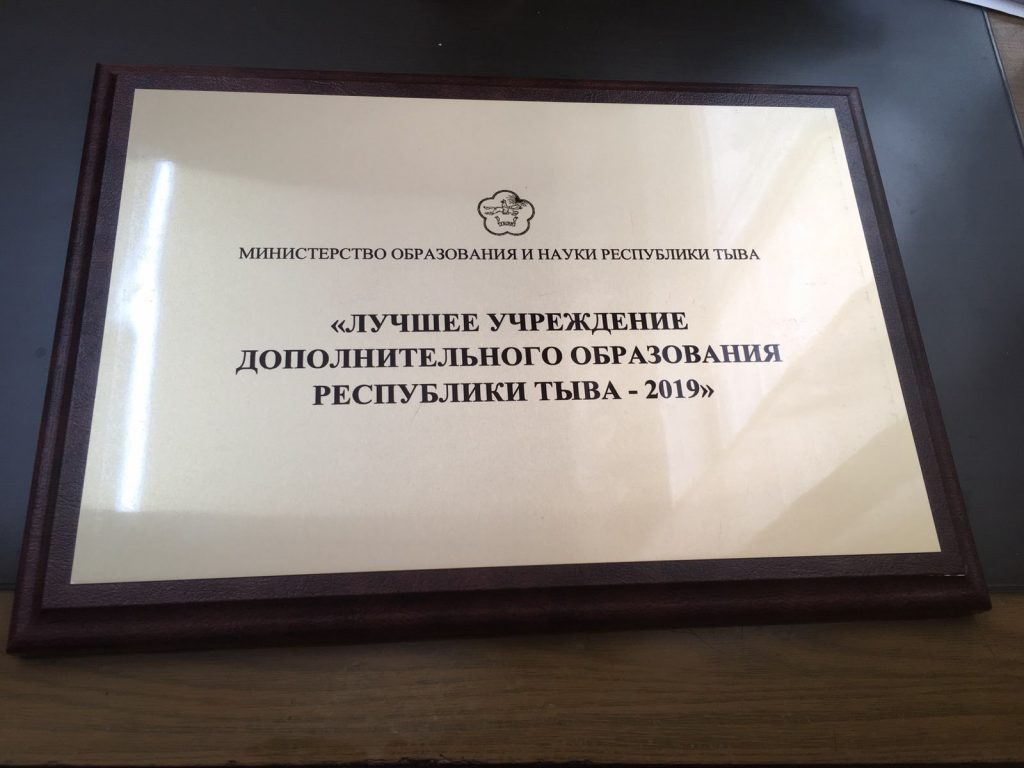 На церемонии награждения ЦДО г.Кызыла получил звание «Лучшее учреждение дополнительного образования Республики Тыва 2019»
