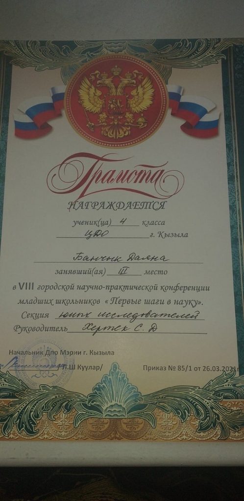 Учащиеся творческого объединения «Краеведение», педагог Хертек С.Д. участвовали в VIII Городской научно-практической конференции младших классов «Первые шаги в науку», секции «Юных исследователей».