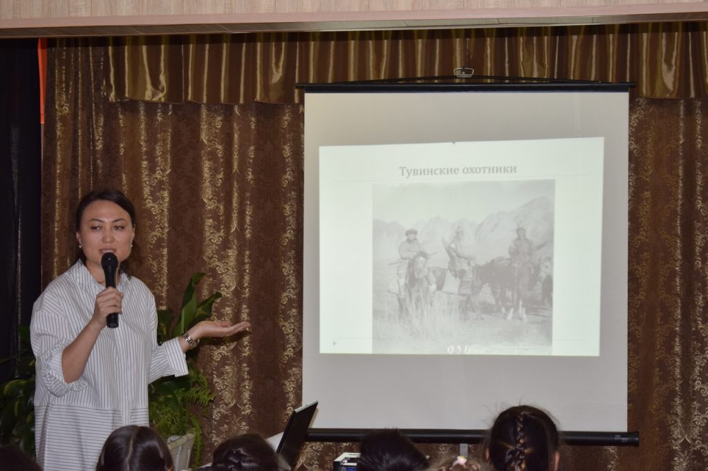 С целью популяризации народного искусства, сохранения культурных традиций, памятников истории и культуры, этнокультурного многообразия, культурной самобытности всех народов и этнических общностей РФ» сотрудник Национального музея Республики Тыва имени Алдан Маадыр провела познавательную лекцию «Тувинский охотник-настоящий воин».