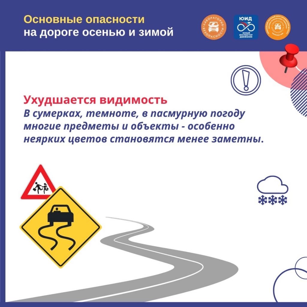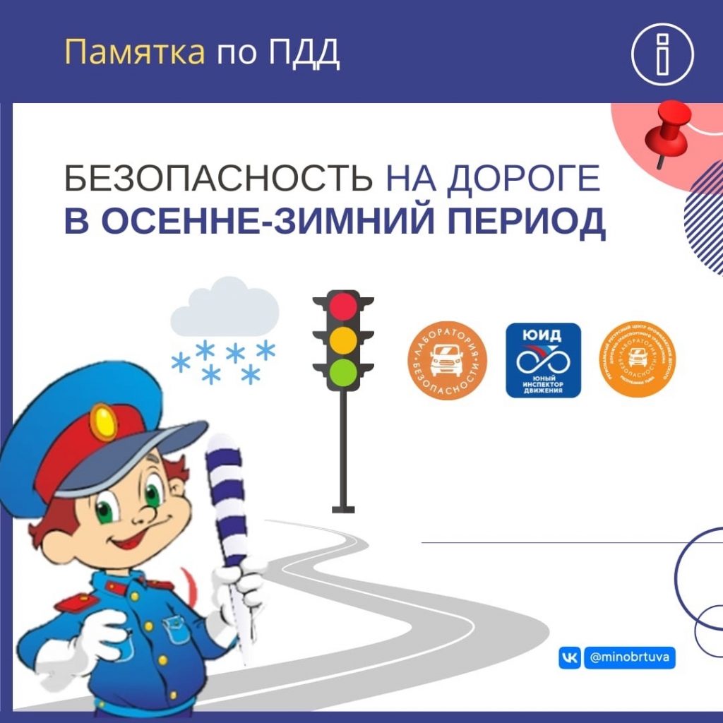 Новости ⚠ Памятка по ПДД 29.10.2022 / Безопасное поведение на дорогах – важнейшая задача для детей, родителей, водителей и прохожих. В осенне-зимний период на дорогах становится вдвойне опаснее. Как обезопасить себя на дорогах в осенне-зимний период смотрите в инфокарточках
