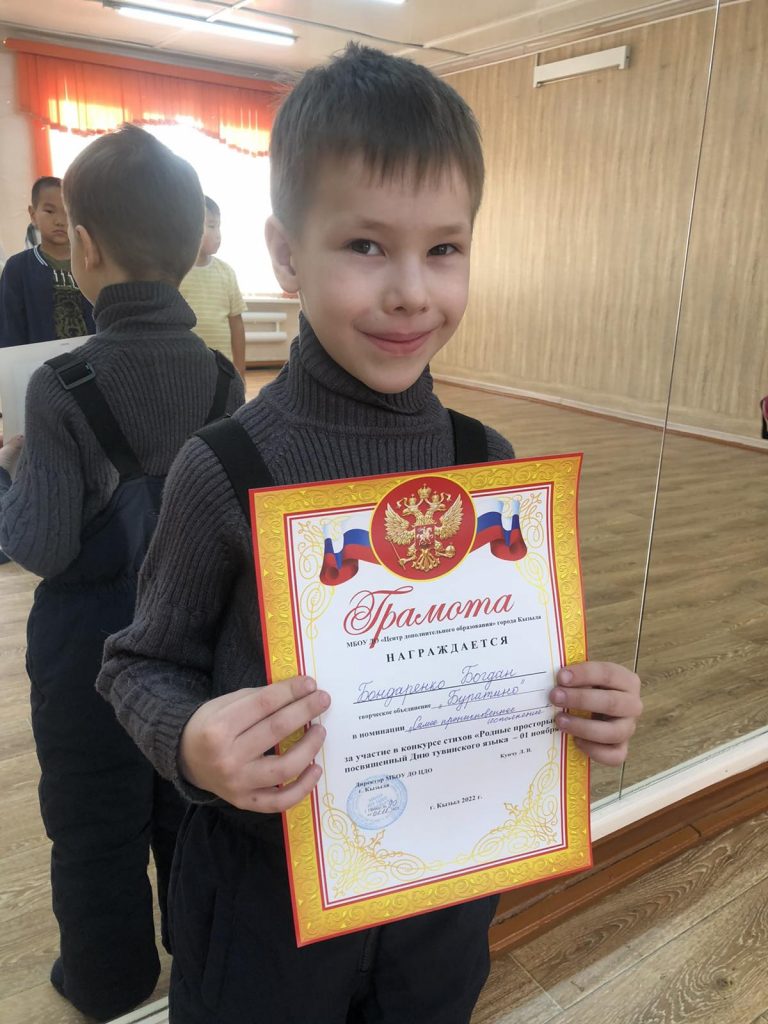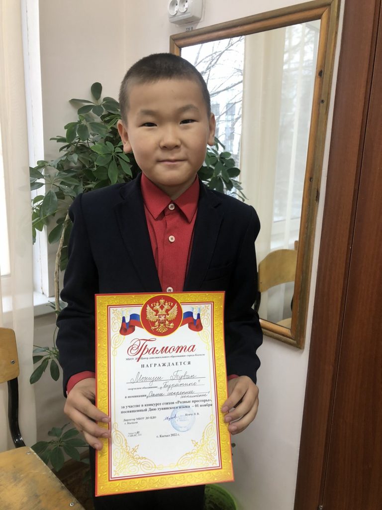 Воспитанники детского театра «Буратино» — активные участники конкурсов, акций, которые проводятся на различном уровне. Это для них возможность проявить артистичность, творчески самореализоваться. Например, приняли участие в городском челлендже «Слава защитникам Отечества», конкурсе чтецов, посвященном Дню тувинского языка. Коллектив детского театра «Буратино» победив на муниципальном этапе, занял почетное 1 место в номинации «Природа. Культура.Экология» республиканского этапа XX Всероссийского детского экологического форума «Зеленая планета 2022», приуроченного к Году культурного наследия народов в России.