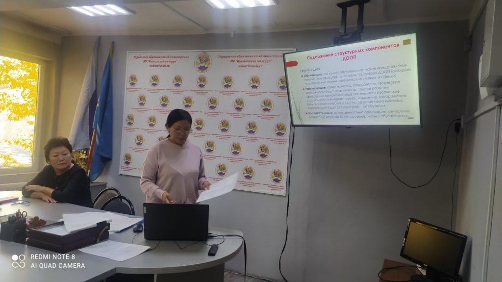 9-10 октября проведены консультации для ответственных лиц образовательных учреждений города Кызыла и Кызылского кожууна по заполнению муниципального сегмента регионального навигатора Тыва ПФДО. На семинар была приглашена методист Регионального модельного центра Аяна Ангыр-ооловна, рассказала про нововведения по работе с порталом.